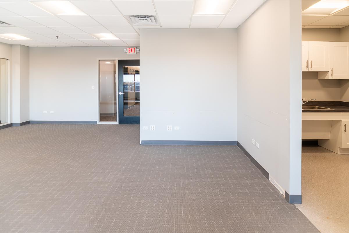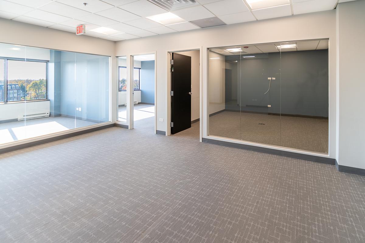 The suite includes three offices, a conference room, a reception area, and a small kitchen.