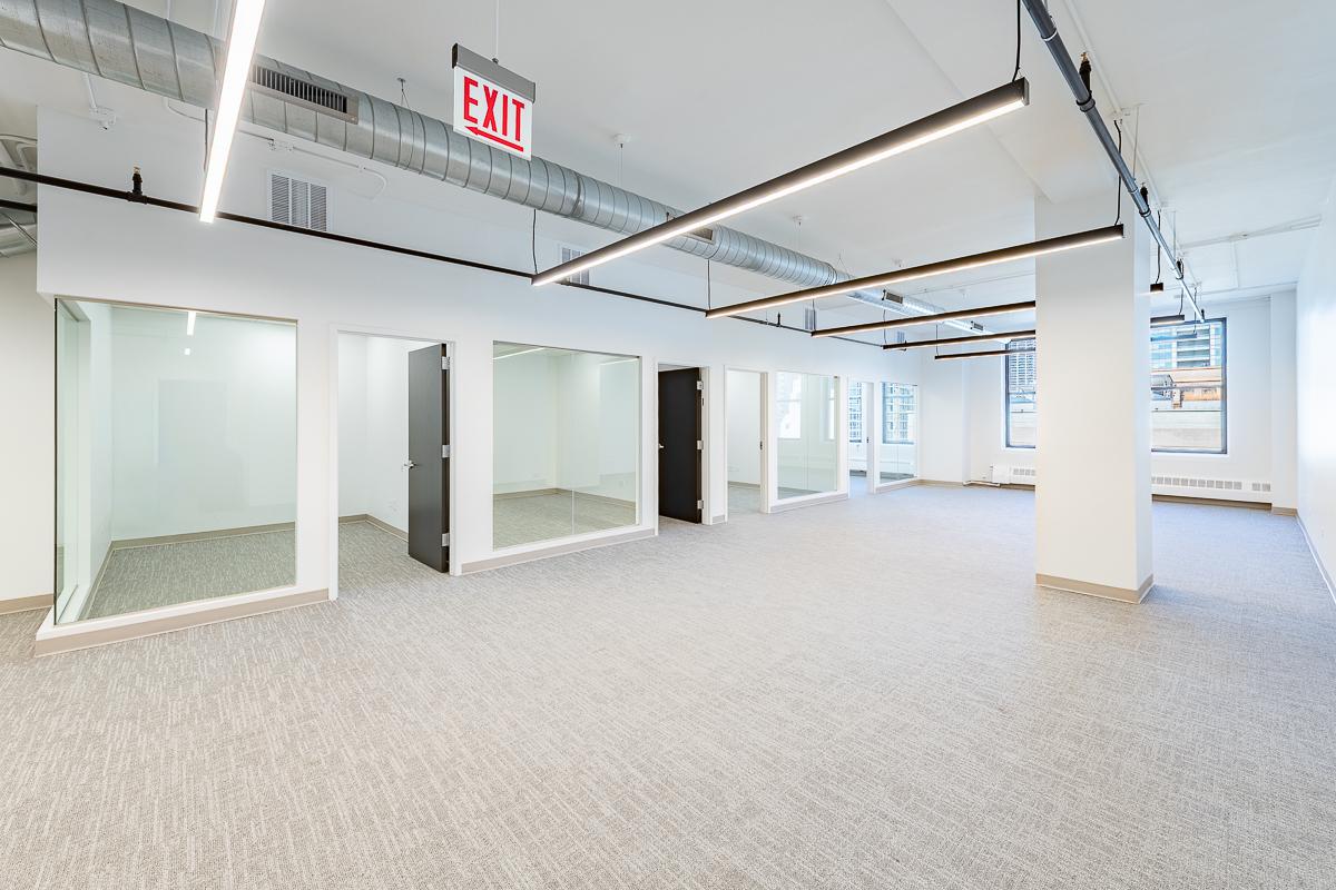 Spec suite featuring kitchenette, IT closet, conference room, open work space, and four(4) private offices.