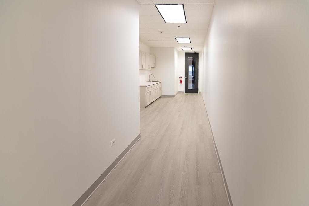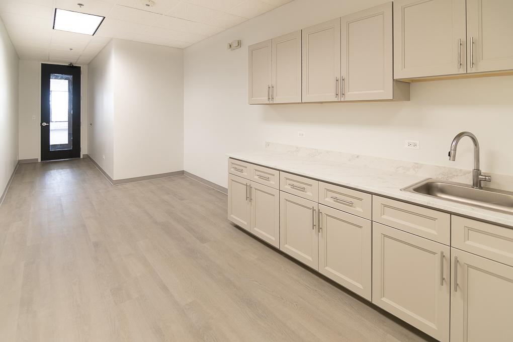 The suite includes two private offices and a shared kitchen with suites 304 and 306.