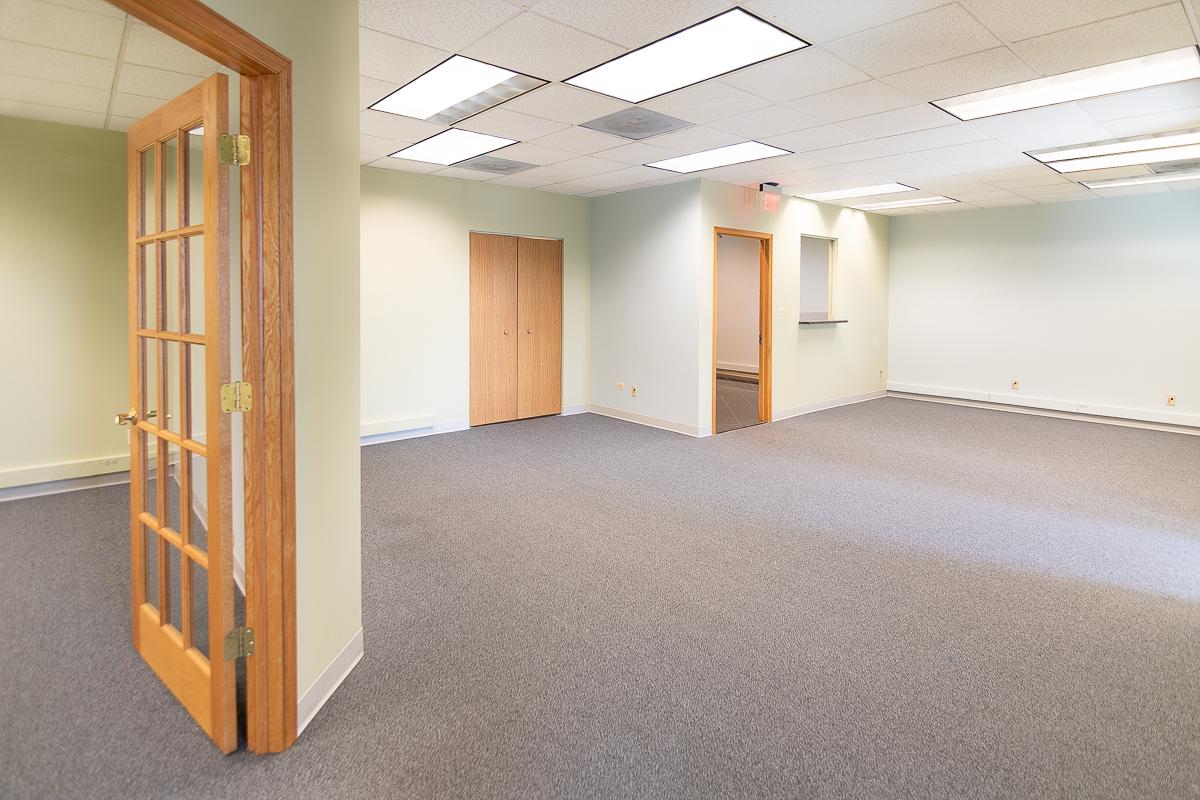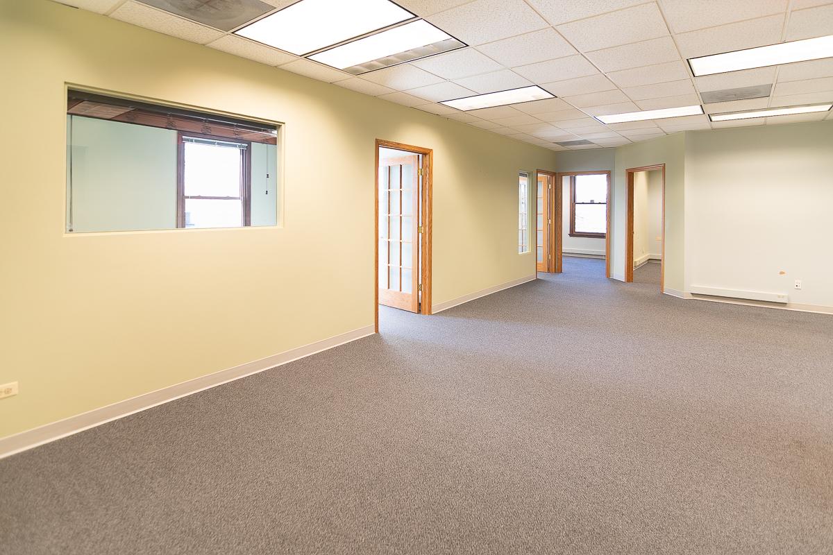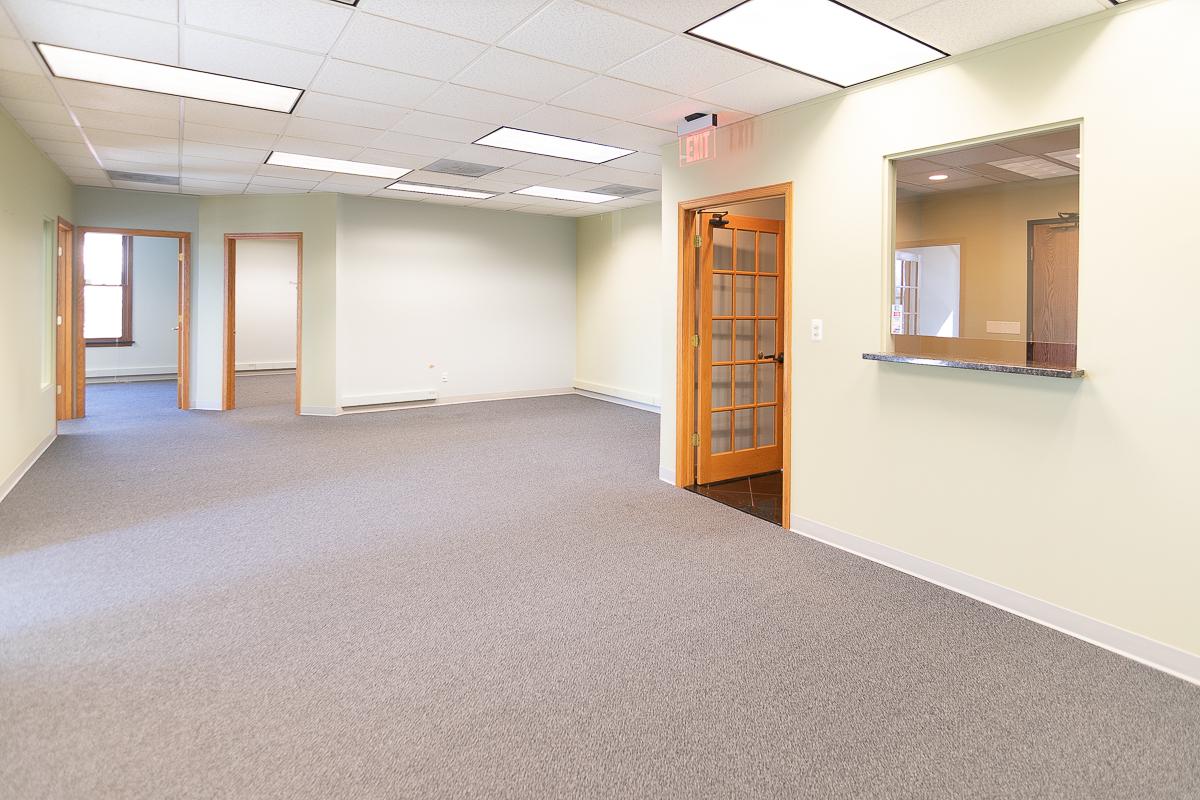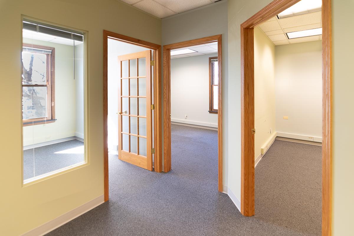 Suite features four offices, including a large corner office that can serve as a conference room, as well as a reception area.