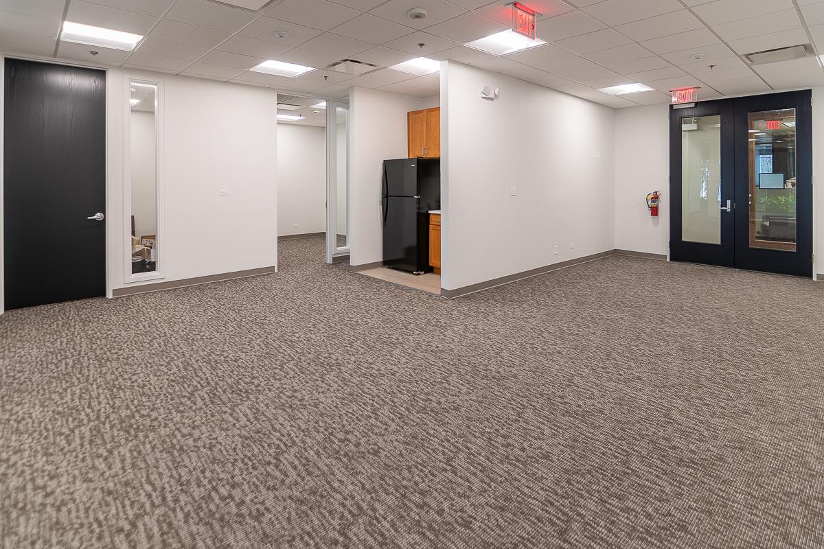 New office suite features two private offices, a conference room, a kitchenette, and open area.