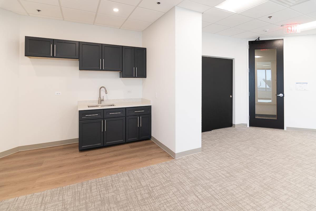 New office space features three offices, an IT/storage closet, a kitchenette, and open area.