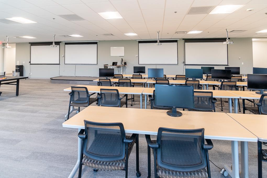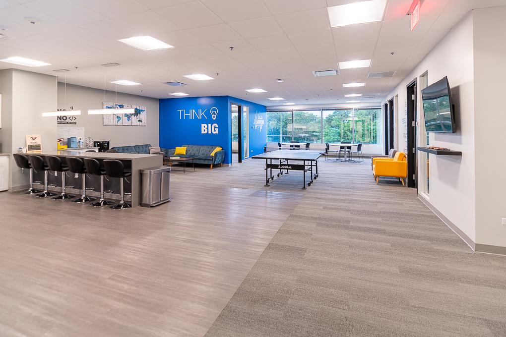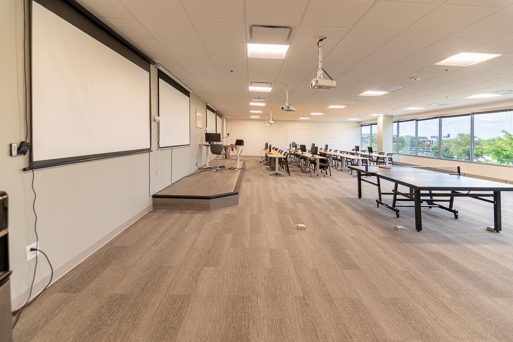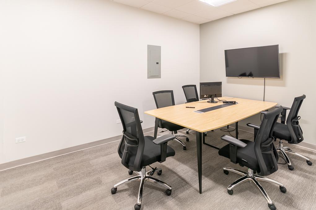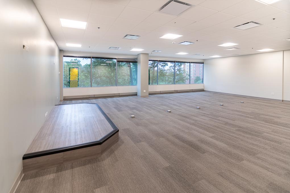 Suite features three entrances, twelve private offices, two seminar rooms, two collaborative areas, two kitchens, and two storage/IT closets.