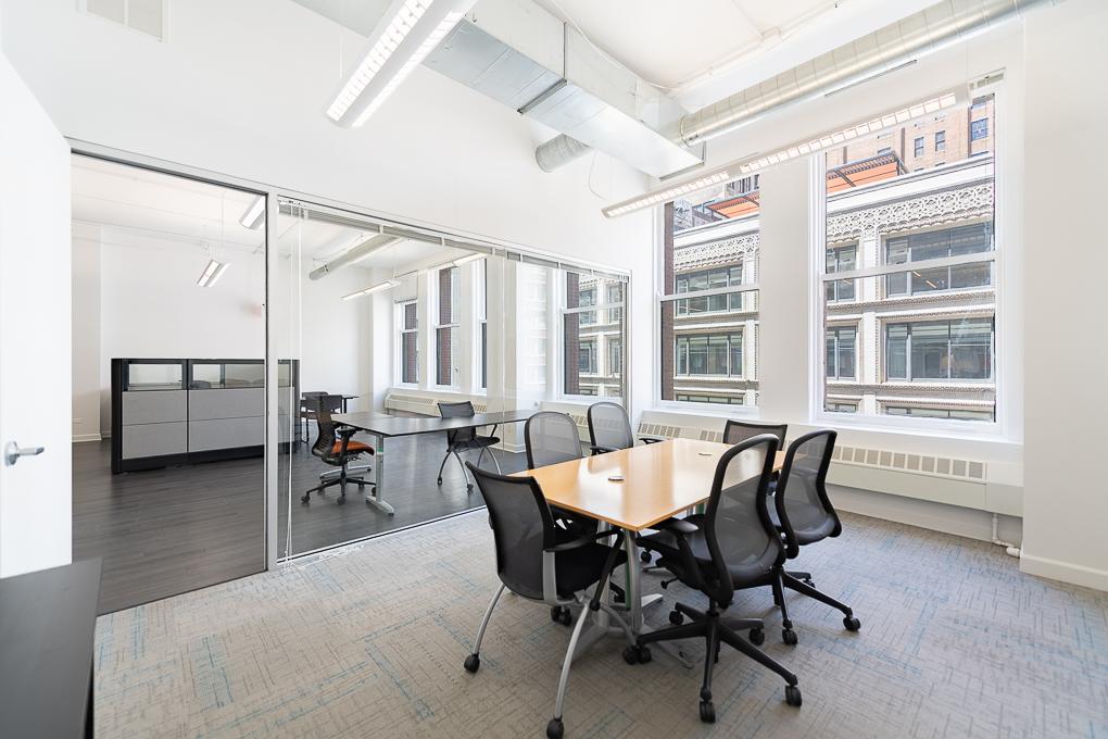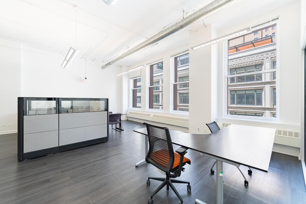 Suite 1005 offers 2,492 sq ft of well-appointed office space in Chicago’s Downtown Loop. This suite features 4 private offices, a kitchenette with a sink and dishwasher, a breakroom area, and a spacious open-concept workspace, providing a balance of privacy and collaboration for any business.