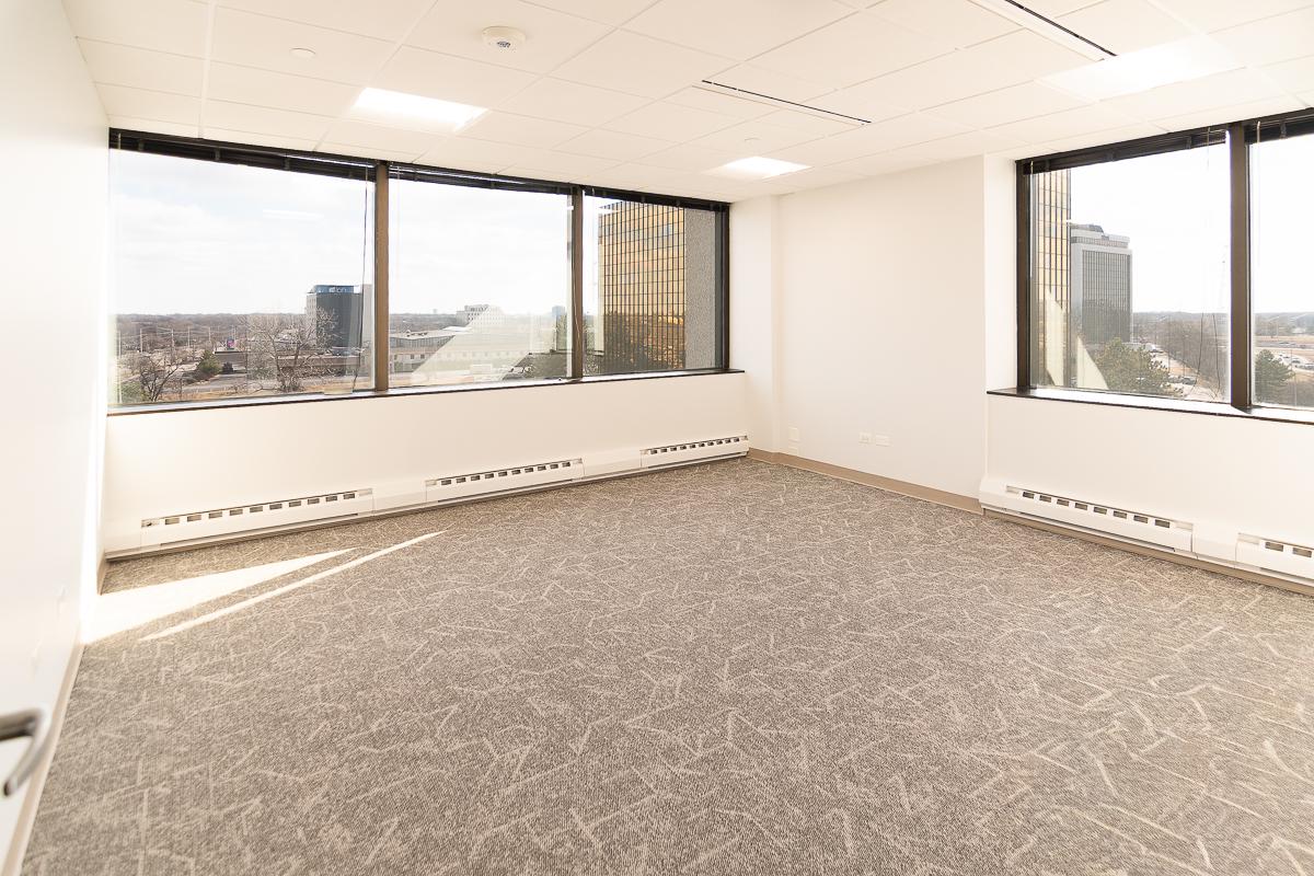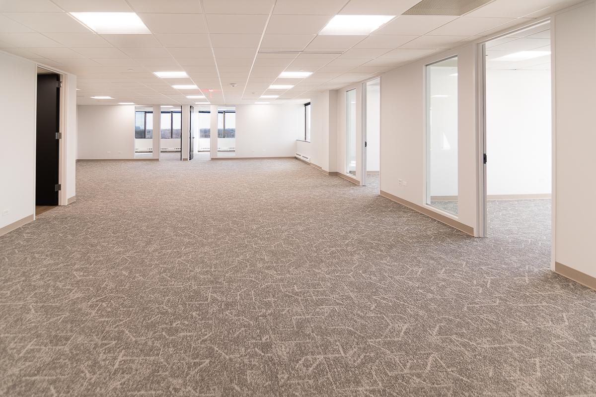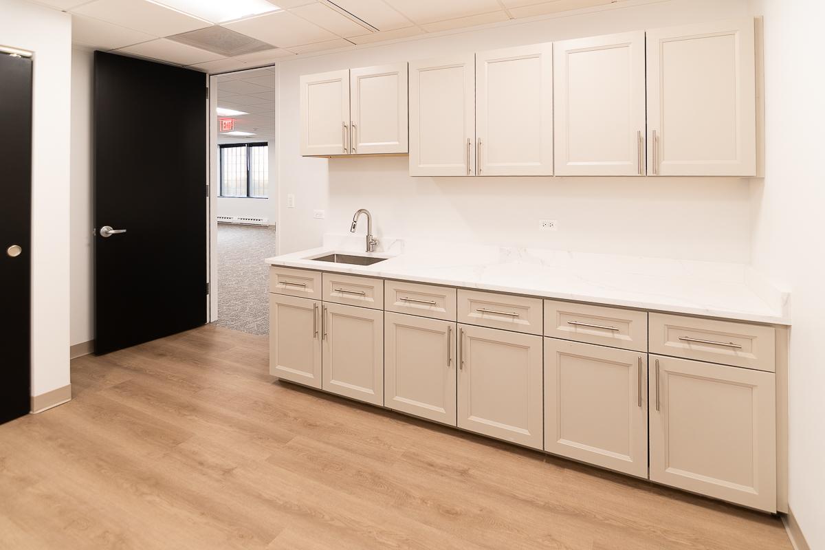 New office suite features five offices, a kitchen, and open area for workstations.