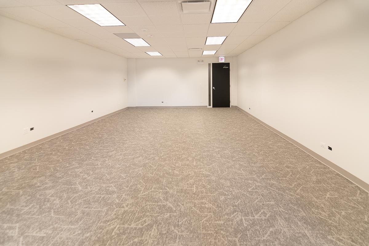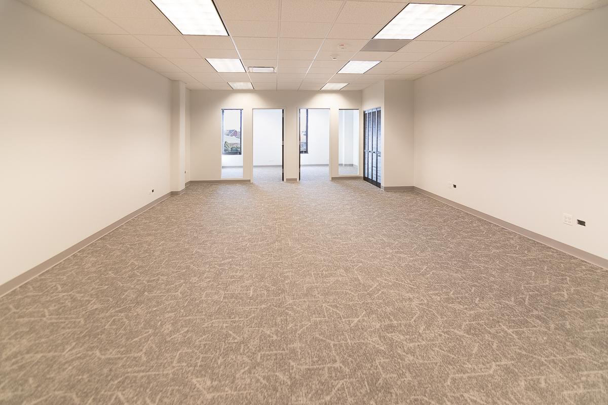 Suite has two offices, an open area for workstations, and a sink